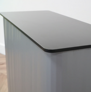 Rollable popup media graphics are velcro fixed in place after assembly.