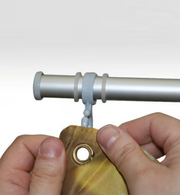 Die Abmessungen der Bannergrafik betragen 600/800 mm breit x 2000 mm hoch, ein verstellbares Breitensystem und Ösenbefestigungen halten die Grafik an Ort und Stelle.