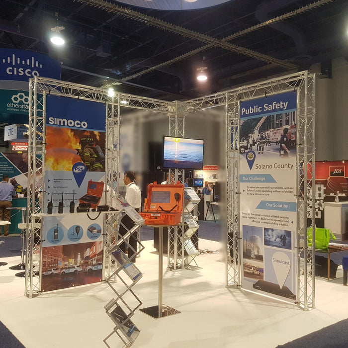 Definieren Sie einen Raum mit der dekorativen Traverse System 35. Hängen Sie Ihre Banner und Ihr Branding auf und sichern Sie Ihre Beleuchtungseinrichtung. System 35 Truss ist ideal in Situationen, in denen der Platz begrenzt ist, aber eine leichte strukturelle Kapazität erforderlich ist. Wählen Sie Ihren Stand als Basis für Ihr Display und arbeiten Sie mit uns zusammen, um alle Elemente hinzuzufügen, die ihn zum Blickfang machen – von Möbeln über Lichter, Banner, dynamische RGB-Displays bis hin zu Teppichen und mehr.