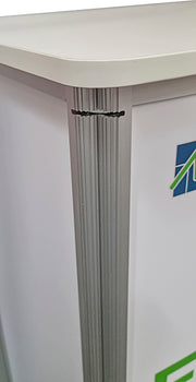 Présentation du comptoir d'exposition pliable et incurvé en aluminium, une solution portable pour des présentations d'exposition transparentes. Avec sa charnière dentée à roulement innovante et son cadre en aluminium, ce comptoir garantit une installation rapide sans compromettre l'esthétique.