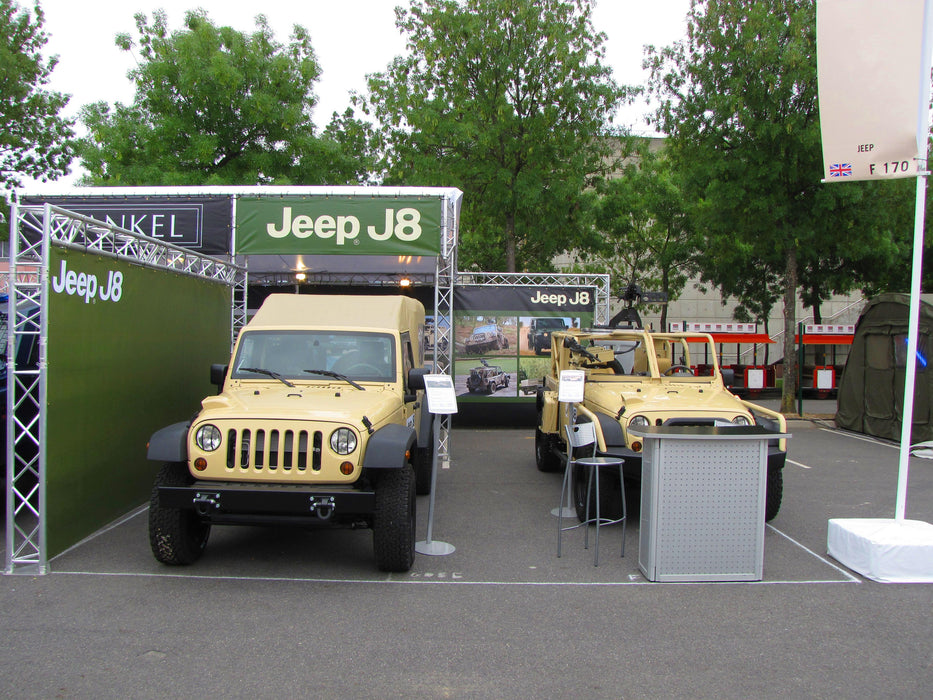 This Truss Exhibition stand has a width of 3 meters and a depth of 5 meters. It stands 3 meters tall with a total weight of 48.1KG.